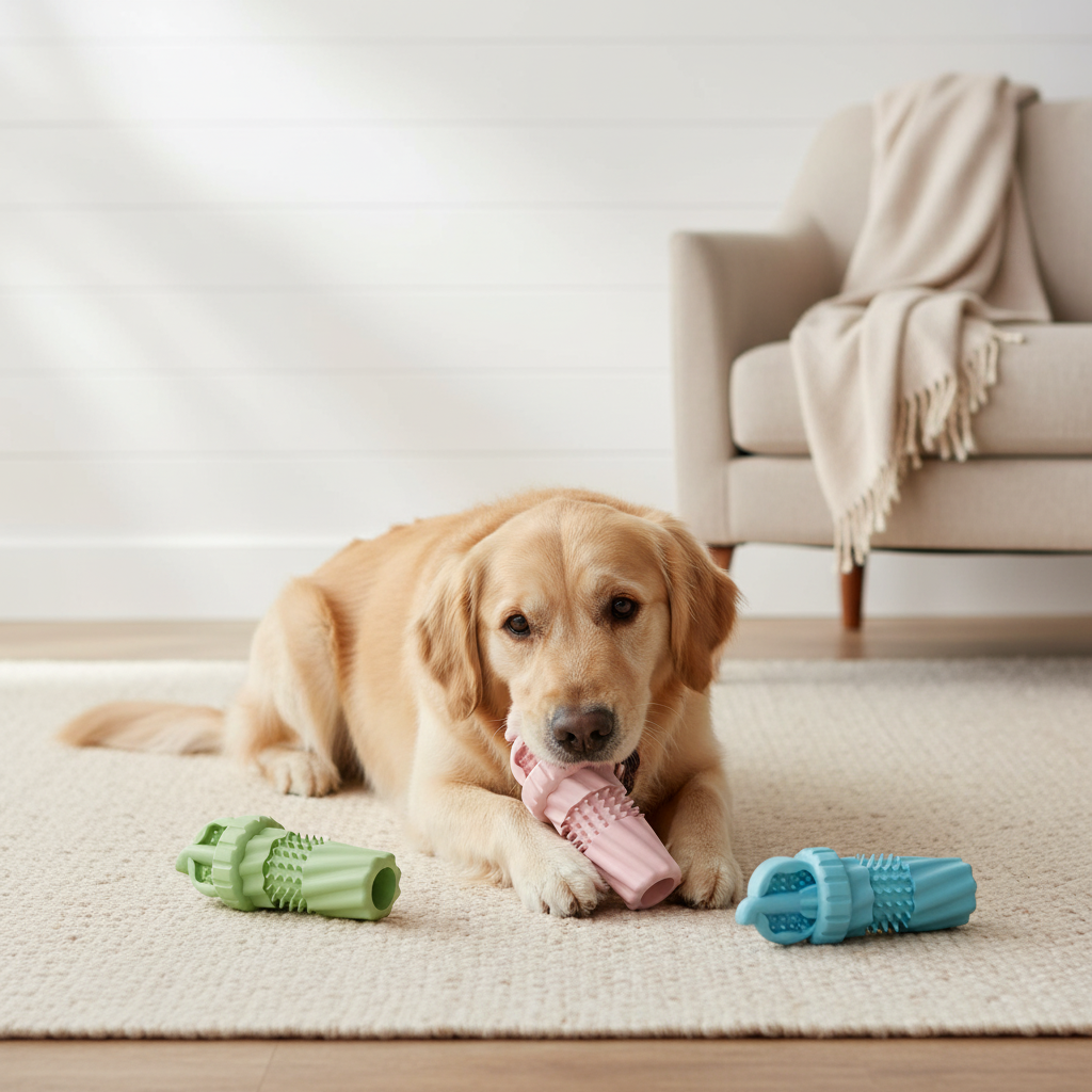 Playtime is more than just fun — it’s how your dog feels loved, calm, and connected. Our chew toys are crafted from non-toxic, durable materials that clean teeth, massage gums, and resist even the most determined chewers — all while fitting your cozy aesthetic.