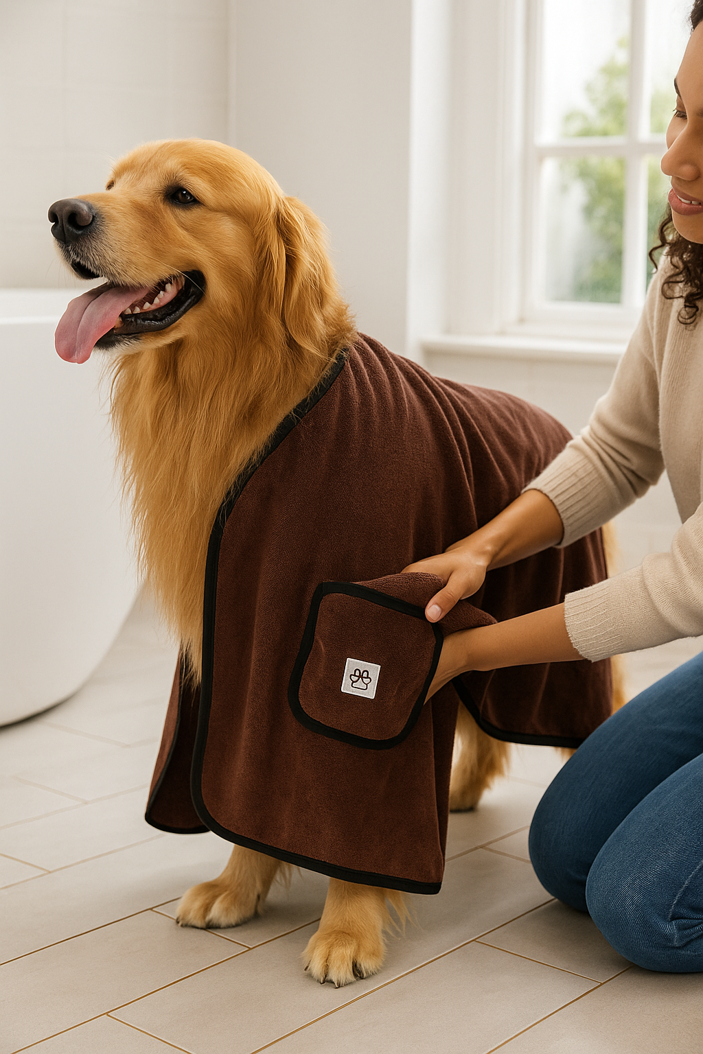 Turn bath time into cuddle time with the CuddleRobe™ Quick Dry Dog Towel. Designed like a cozy bathrobe, it wraps your pup in warmth while quickly absorbing moisture. The built-in glove-style pockets give you better control for rubbing, drying, and bonding — so your dog feels loved and pampered after every bath. Soft, lightweight, and fast-drying, it’s the perfect grooming essential for dogs who deserve a little spa-like care at home.