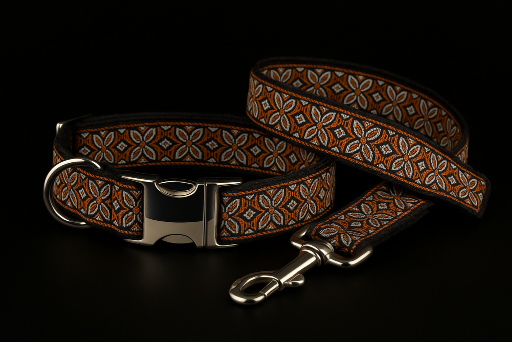 Each collar is hand-finished with premium hardware and a smooth adjustable fit, available in sizes for small to large breeds. Pair it with the matching lead set for the ultimate coordinated look.