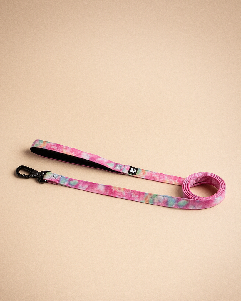 Crafted from high-density polyester poplin webbing, it’s built to handle the strongest pullers while keeping your grip soft and comfortable. The padded handle ensures no more hand burns or discomfort during long walks, while the vibrant tie-dye pattern makes every outing Insta-worthy.