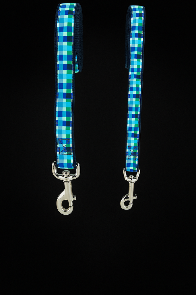 CuddleMutt “Coastal Breeze” Blue Plaid Dog Leash