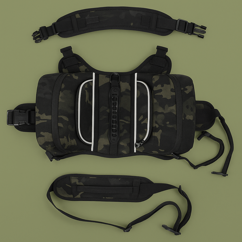 🐾 Fully Adjustable Fit: Secure chest and belly straps for a snug, stable fit on breeds like Labs, Huskies, or Shepherds.