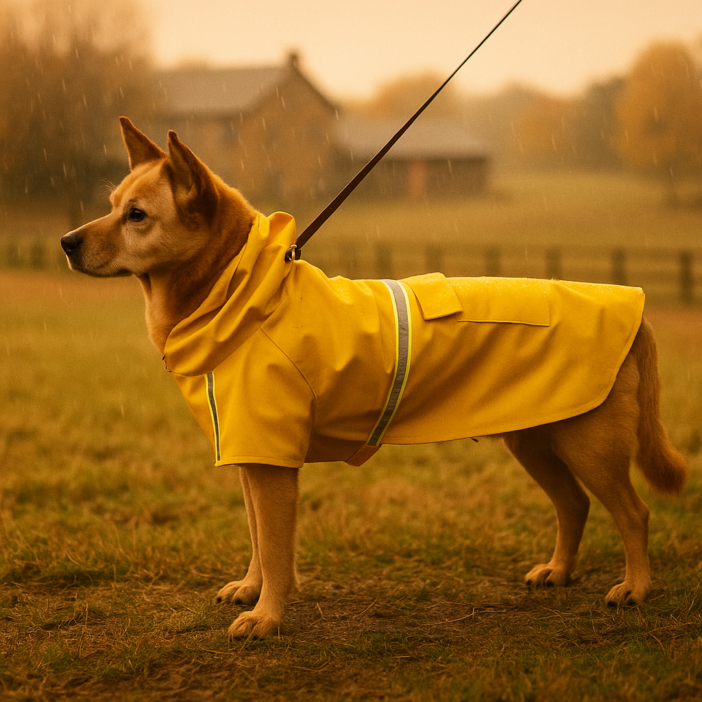 dry, safe, and stylish 🌧️🐶 with the Rainy Day Mutt Coat! Designed with a